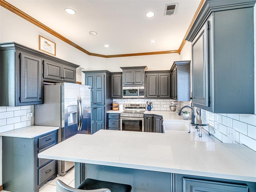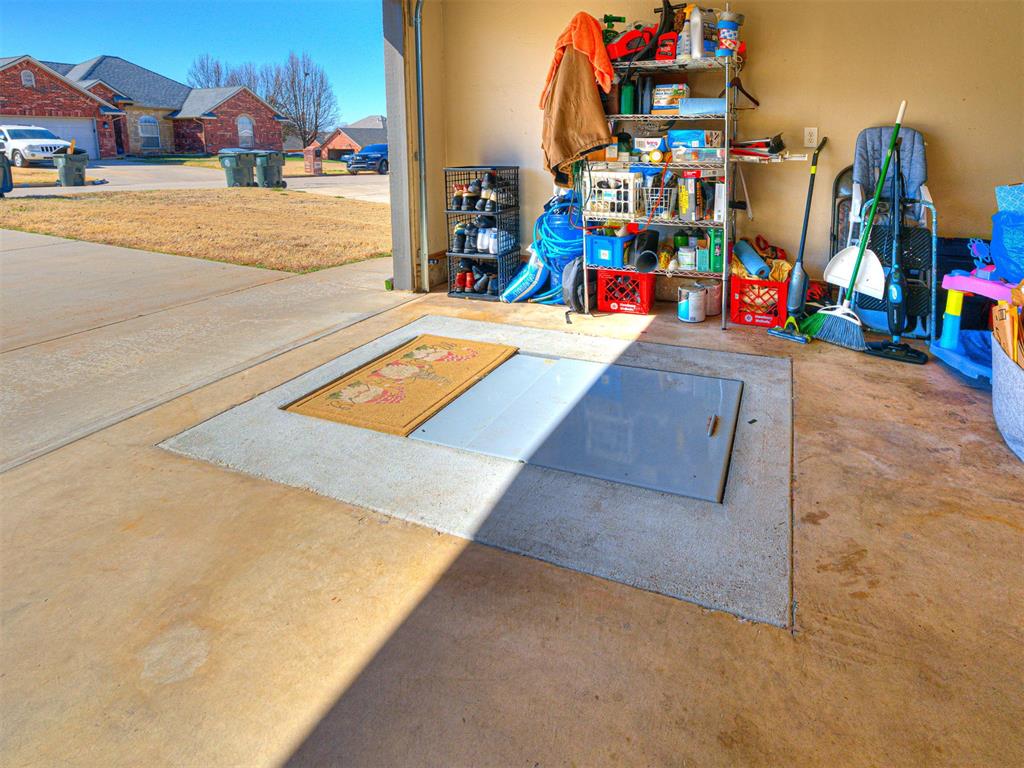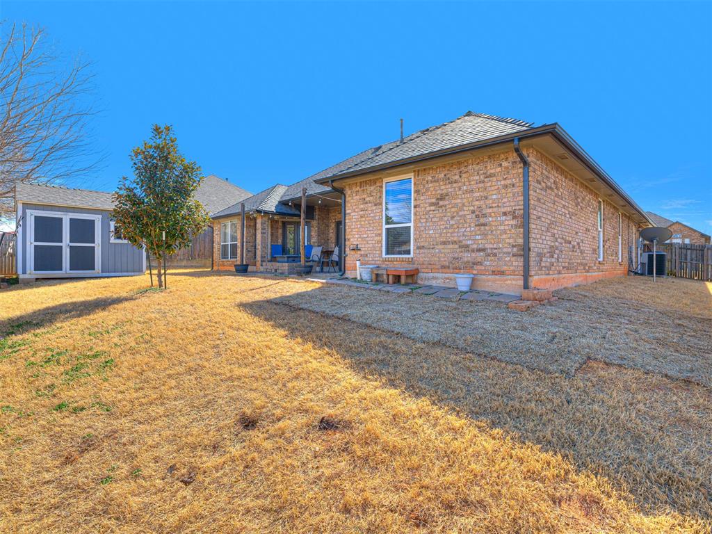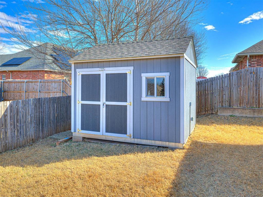 Step outside to a great-sized lot offering room to enjoy Oklahoma's beautiful seasons. The backyard features a large storage building, ideal for tools, hobbies, or additional storage needs. For added peace of mind, the property also includes a storm shelter. New Roof, new gutters & new garage door all in 2026.